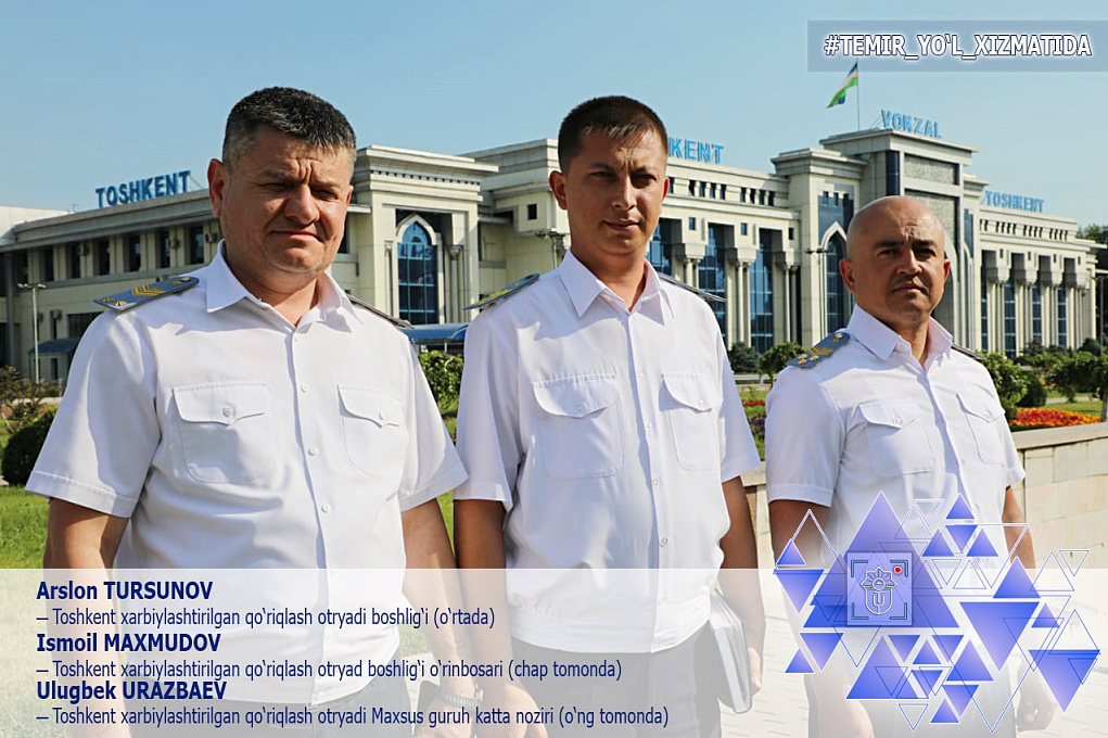 АО "Узбекистон темир йуллари" выражает особую благодарность Управлению обеспечения безопасности на транспорте Ташкентской области и отделению обеспечения безопасности на транспорте станции Ангрен.