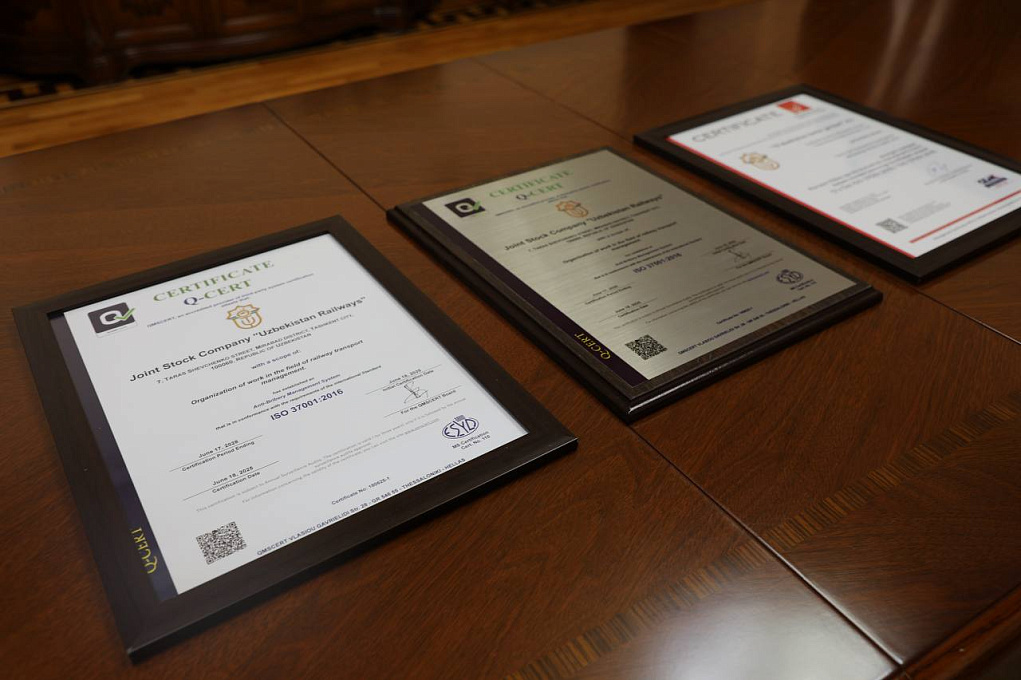 — O‘z Dst ISO 37001:2019 hamda ISO 37001:2016 sertifikatlariga ega boʻldi. Xamda joriyyilning 27-iyun kuni “Oʻzbekiston temir yo‘llari” aksiyadorlik jamiyatida mazkur sertifikatlarnitopshirishga bagʻishlangan tadbir boʻlib oʻtdi.
