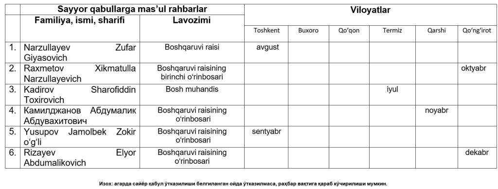 2025-yildagi sayyor qabul bo‘yicha ma'lumot