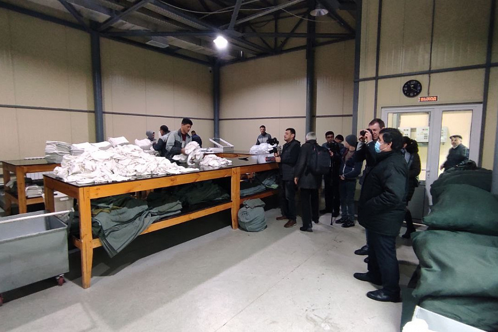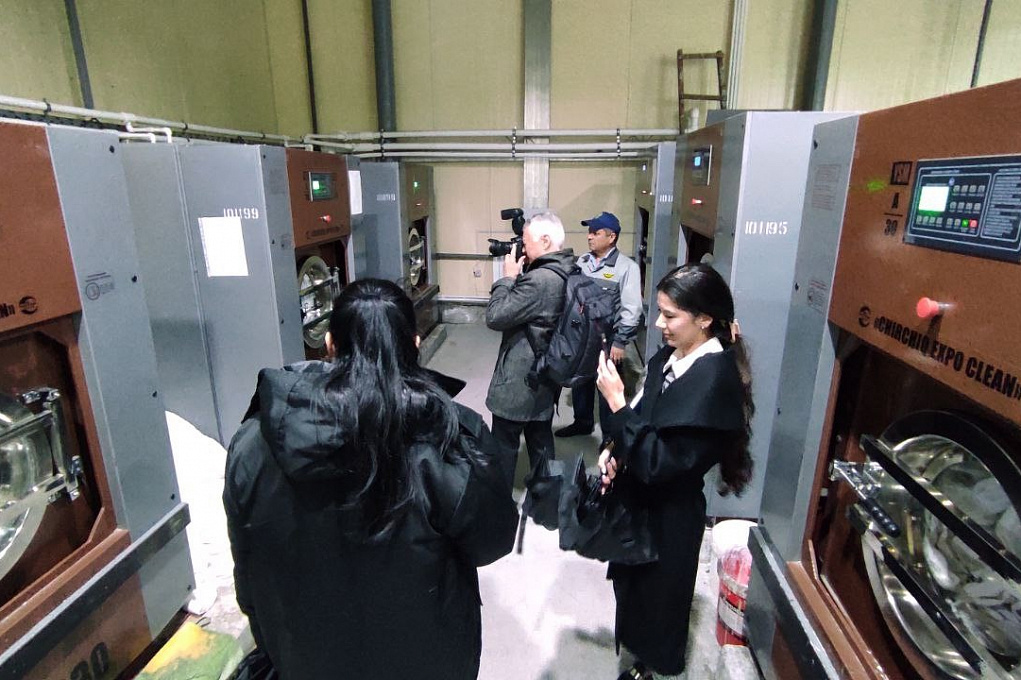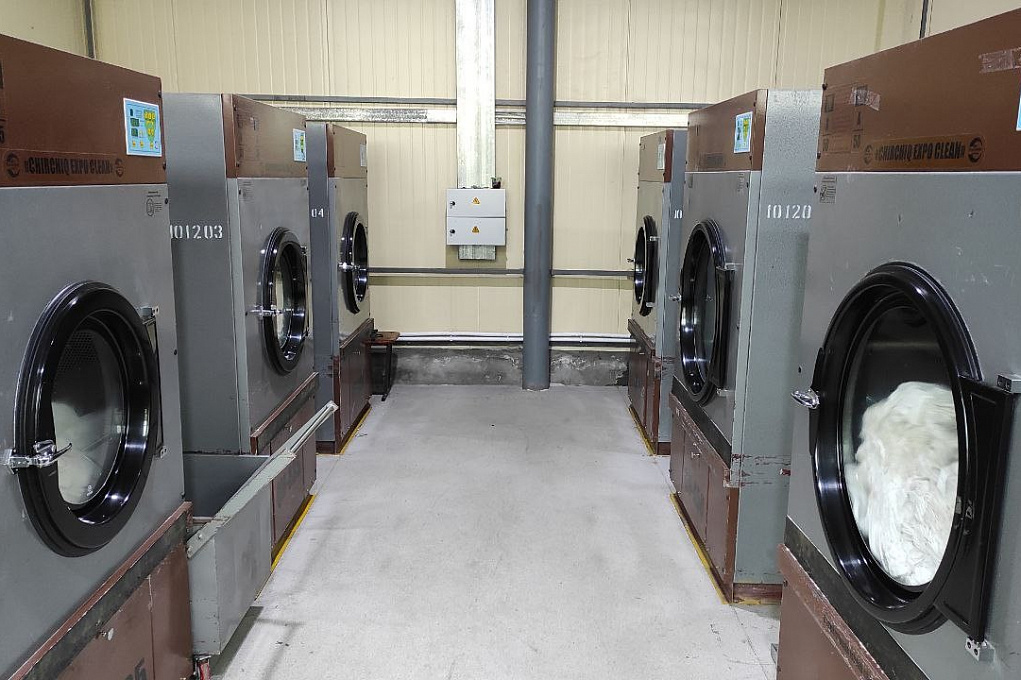 Press-tur davomida ommaviy axborot vositalari vakillari shuningdek, kir yuvish majmuasiga tashrif buyurishdi. Bu yerda, vagondlarda ishlatilgan mato anjomlarini yuvish, mexanik va kimyoviy tozalash ishlari amalga oshiriladi. Darvoqe, ushbu majmua ochilganiga atigi 3 oy bo‘lgani haqida aytib o‘tildi. Avvallari, ishlatilgan choyshablarni yuvish va tozalash uchun xususiy sektor xizmatlariga murojaat etilardi. Yangi kir yuvish majmuasi ochilgan 146 nafar ishchi-xizmatchi bandligi ta’minlandi. Bu yerda 30 kilogramdan 100 kilogramgacha bo‘lgan kir yuvish uskunalari ishlatilmoqda. Filialda shuningdek, vagon choyshablari va temiryo‘lchilar uchun ayrim turdagi maxsus kiyim-kechaklar tikish sexi ham mavjud.