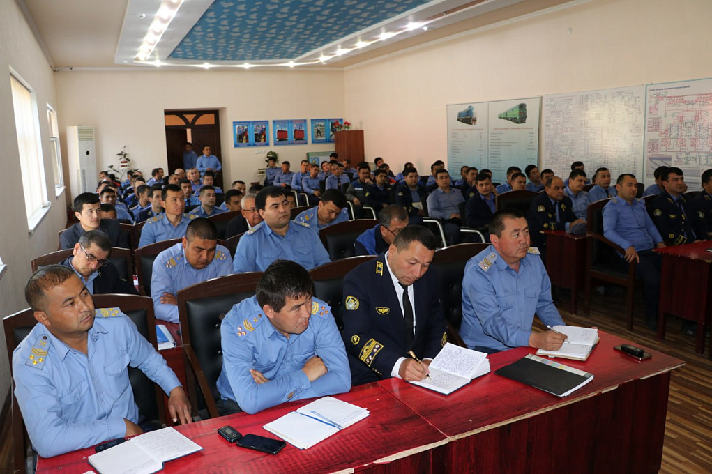 “Termiz mintaqaviy temir yo‘l uzeli” unitar korxonasi boshlig‘i F.Giyazov poyezdlar harakati xavfsizligini ta’minlash, mehnat muhofazasi talablarini bajarish hamda ishchi-xodimlarni o‘z navbatchiliklarida hushyorligini oshirgan holda ishlarni amalga oshirishni tashkil etish maqsadida uzel tarkibidagi korxona va tashkilotlarda ishlovchi barcha o‘qitish yo‘riqchilari, harakat xavfsizligi nozirlari va mehnat muhofazasi muhandislari ishtirokida yig‘ilish o‘tkazdi. Unda har bir ishchi-xodimga tegishli yo‘riqlar o‘tish bo‘yicha ko‘rsatma va topshiriqlar berildi.