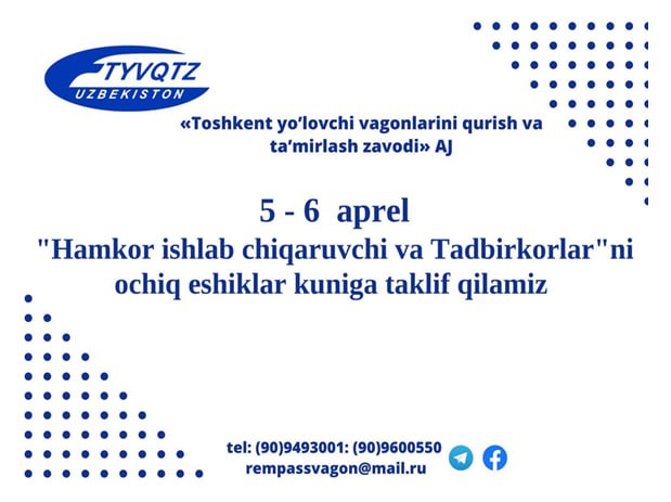 Hurmatli hamkorlar, ishbilarmon va manfaatdorlar diqqatiga!